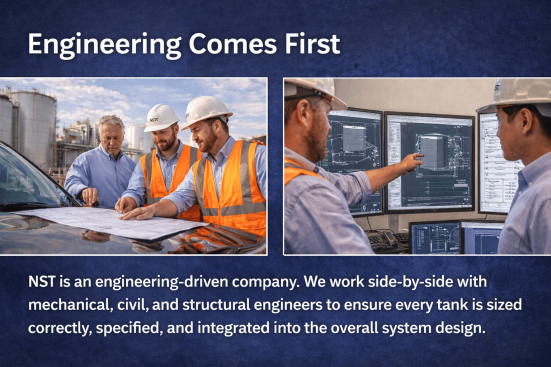 NST is an engineering-driven company. We work side-by-side with mechanical, civil, and structural engineers to ensure every tank is sized correctly, specified, and integrated into the overall system design.