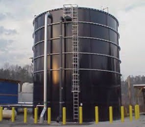 197,000 Gallon Glass-Fused Bolted Steel Tank measuring 21-ft in diameter and 72-ft at the peak, fabricated with glass-fused steel panels bolted together using mastic and gaskets to ensure a watertight seal. The glass-fused-to-steel process ensures that water never touches the metal panels. Glass Fused Steel (GFS) tanks are a great example of the innovation occurring in the tank industry today.