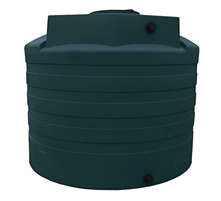 2650 gal Green HDPE Water storage tank. Utilizes State of the art One-piece Seamless Construction For High quality storage capabilities.