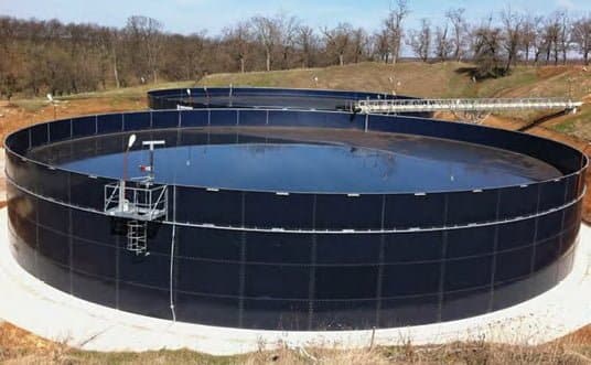667,400 Gallon Glass-Fused Bolted Steel Tank measuring 60-ft in diameter and 32-ft at the peak, fabricated with glass-fused steel panels bolted together using mastic and gaskets to ensure a watertight seal. The glass-fused-to-steel process ensures that water never touches the metal panels. Glass Fused Steel (GFS) tanks are a great example of the innovation occurring in the tank industry today.