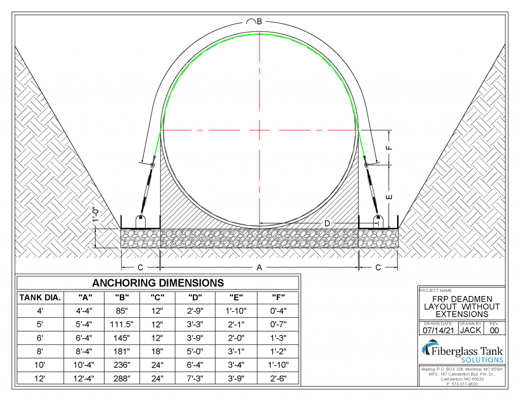 Tank End View Chart-Fiberglass Deadmen (WITHOUT EXTENSIONS)
