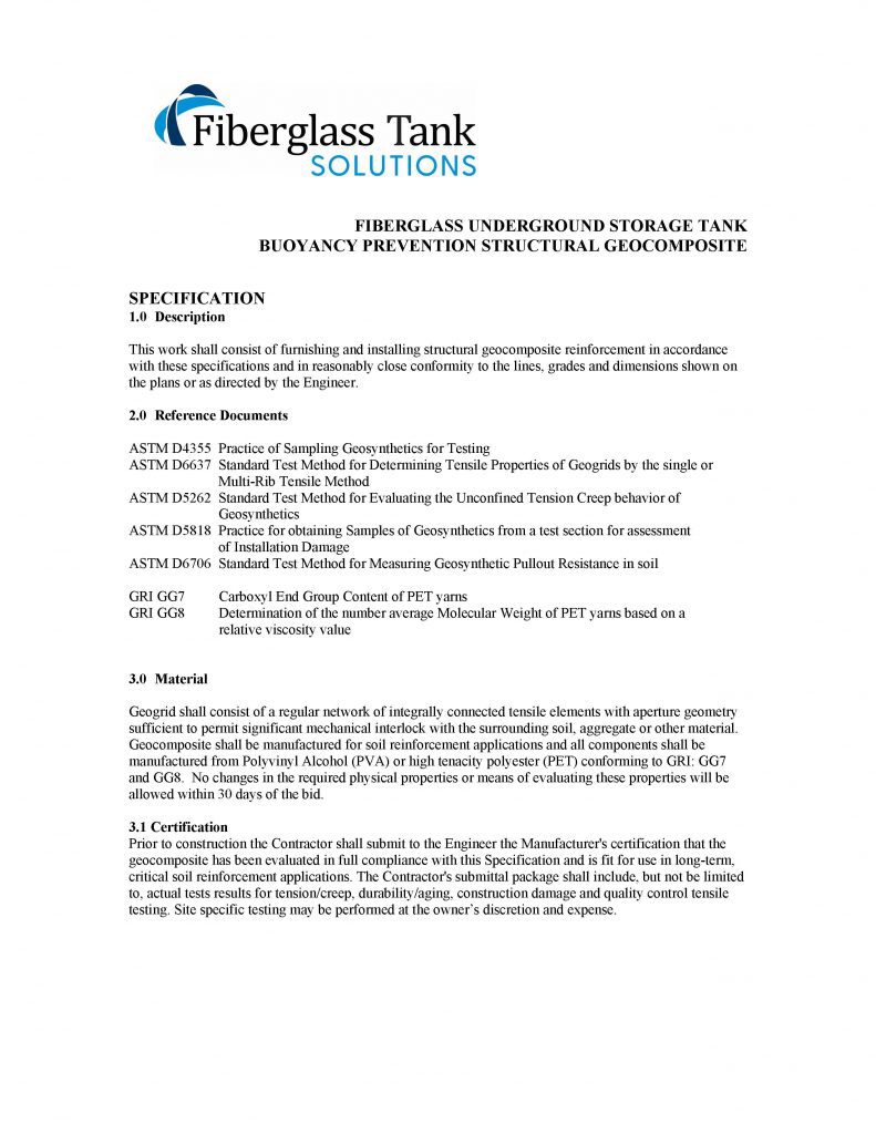 UST BUOYANCY PREVENTION STRUCTURAL GEOCOMPOSITE